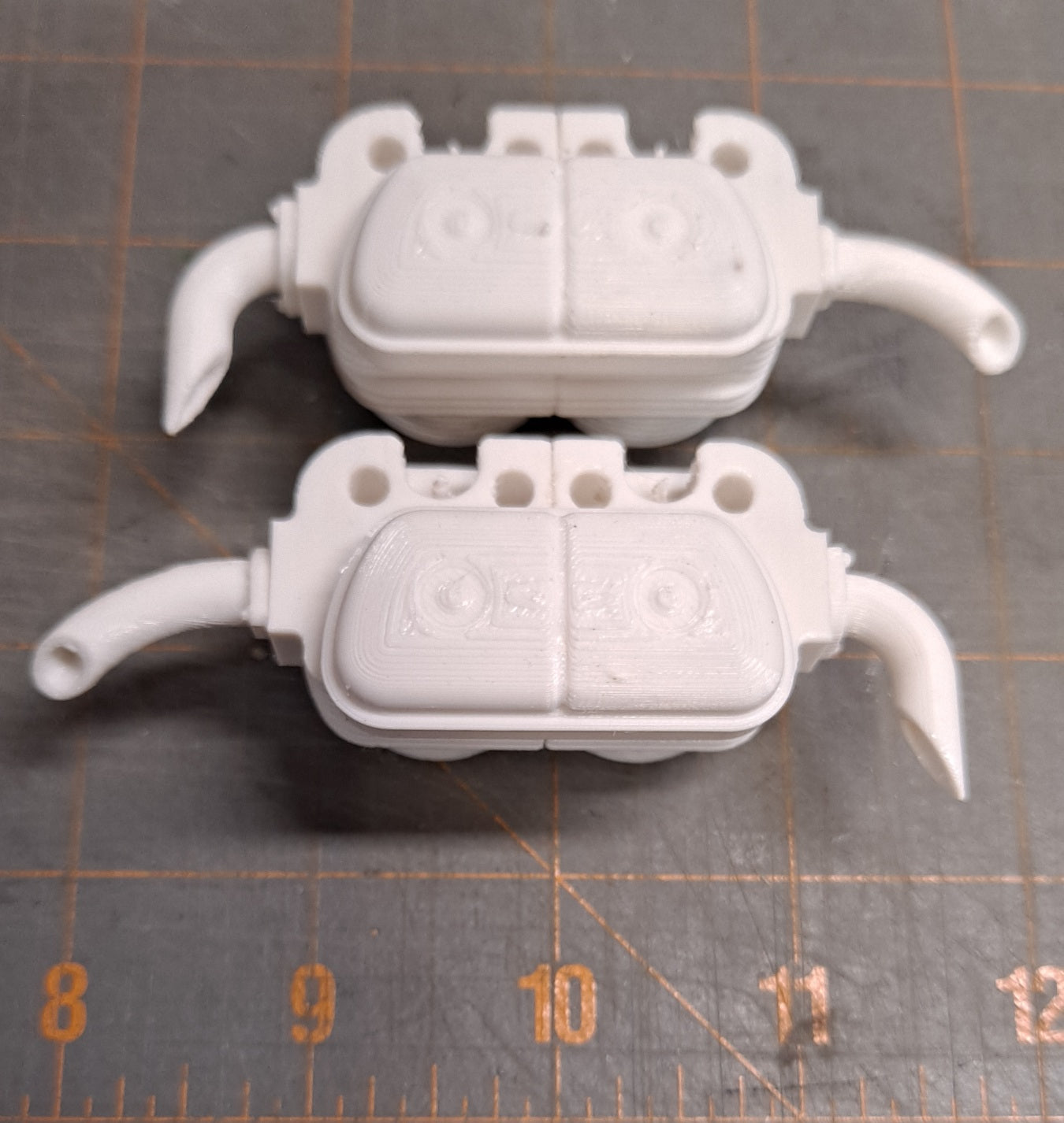 The replica VW motor is supplied as a kit - the motor is divided into two blocks which are glued together, then the valve cover is glued on, finally the two exhaust tubes are glued to each side. The prototype is pictured here "as-is", no attempt was made to fix anything - so this is how the parts look without any modification or added detail.
