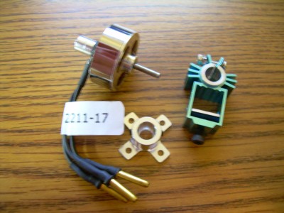 Our 17gm 2000kv brushless motor (also called the 2211) fits in the product line in between our 10gm and 24gm motors - its the motor we recommend for the "Regular Komet" kit that we sell. This motor can be used with 2S or 3S Lipo batteries and uses a 7x6 or 8x4 2-blade propeller. Rated at 250gm thrust at 6 amps, 2mm motor shaft.