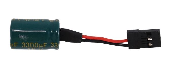 This is a 3300uf capacitor with a male connector, simply plug it into any unused channel on your receiver (or use a Y harness).