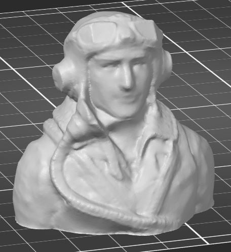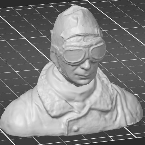 Please note that the dimensions (height and width) will change in the same ratios when the pilots are enlarged or reduced. If you need a taller figure, these busts can be placed on a stand. If you need narrowed shoulders, I can cut the sides off. 3D-parts have a fairly smooth surface finish, but you may wish to carefully remove bits of flash or smooth out minor defects (3D printing is not perfect). If you look closely at the painted pilot you can see the "grain" - this isn't visible from a foot away. It's possible to use some light sanding (carefully) to smooth the grain.