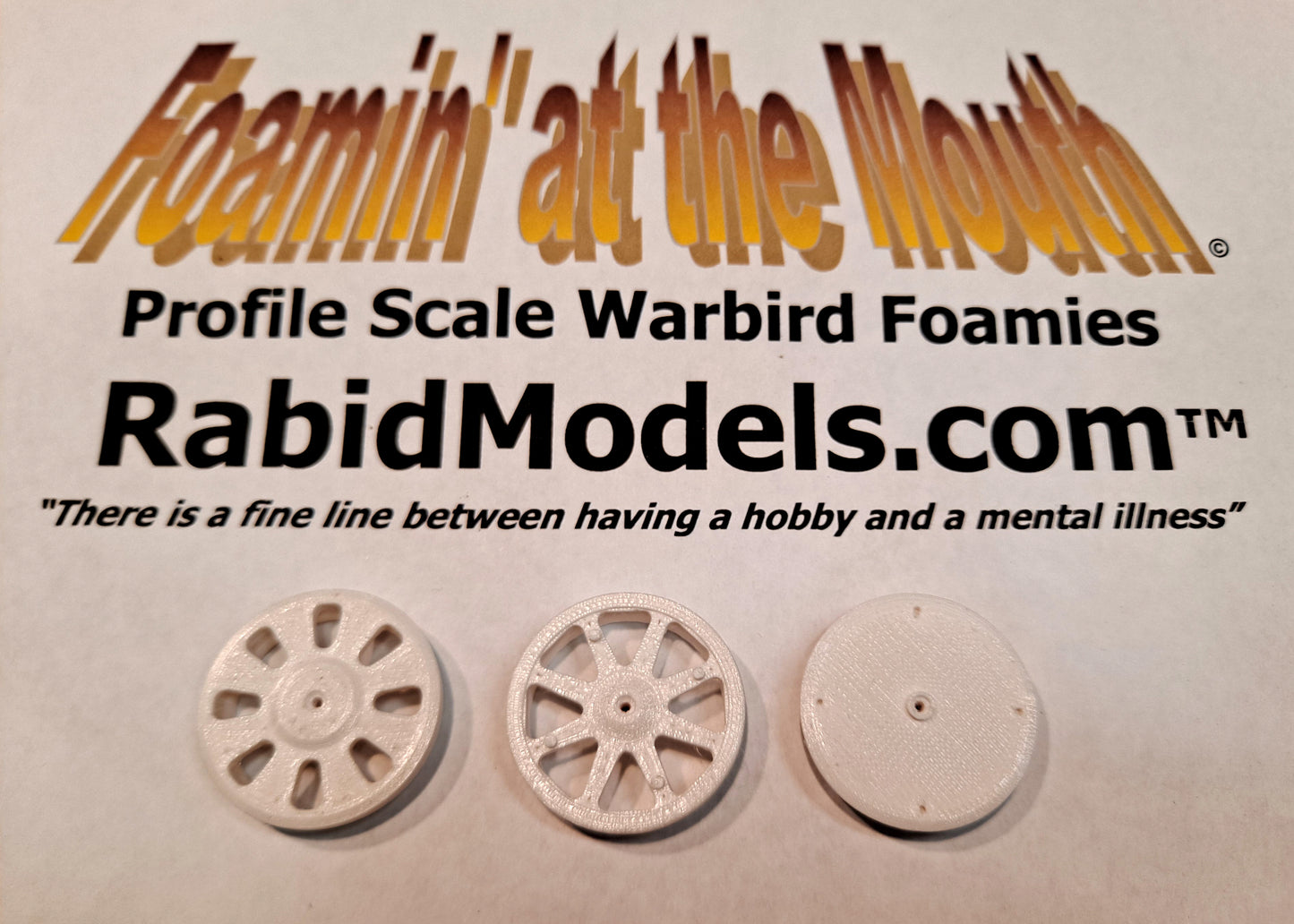 In addition to the fantastic scale spinners we offer, we're proud to also offer lightweight 3D-printed scale wheels for Derek Micko's Fun Scale Models P-40, Macchi Folgore 202, and the P-63!