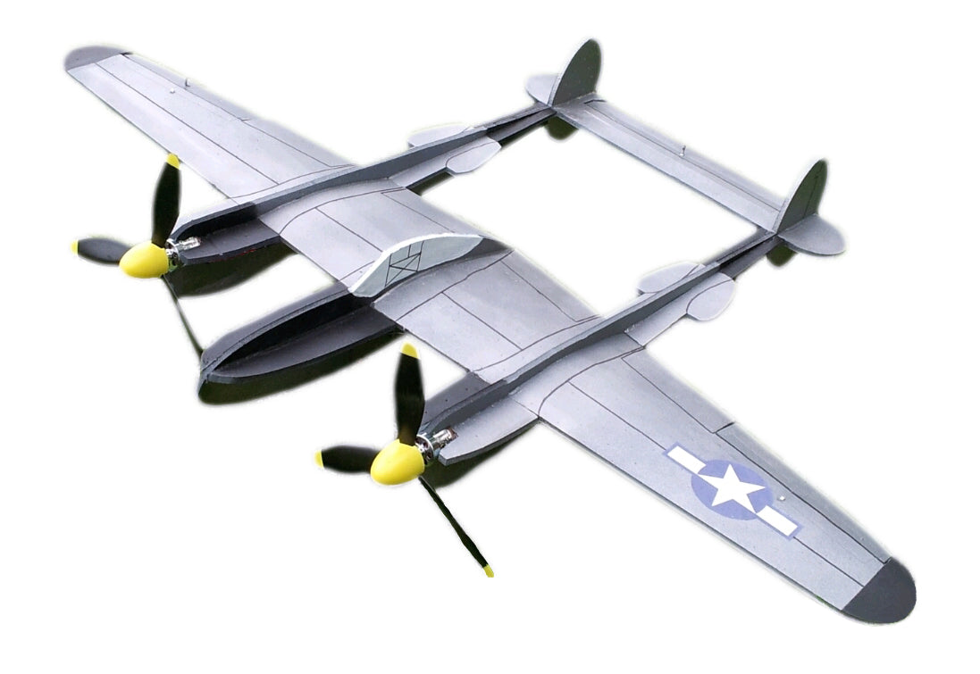 Jeff Troy built two models - his 40" P38 is in the background and the smaller 28" version is up front! He added invasion stripes and installed expensive custom-made Tru-Turn© aluminum spinners. Spinners are not included with this kit but our custom-designed 3D-printed plastic spinners are available separately and can be seen in the main product photo. This model looks great with the spinners so we highly recommend them!