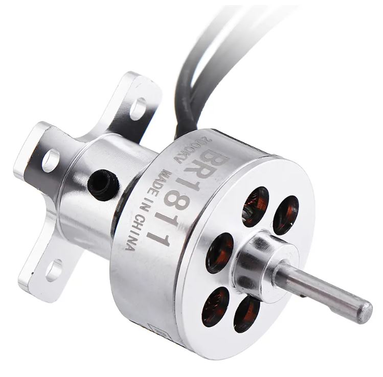 The 10gm 2000kv brushless motor (also called 1811) is a really excellent little motor that can handle a variety of props and can be used with 1S, 2S, or 3S Lipo batteries. Typical propeller when used with a 3S battery is a 2-blade 6x3 or a 3-blade 5x4. This motor is rated at 150gm of thrust with the 6x3 propeller at 4 amps.
