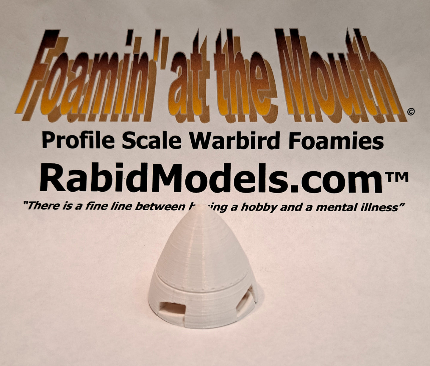 The 40mm diameter 3D-printed 4-blade spinner (cone and backplate) was designed specifically for Derek Micko's 30" wingspan "Fun Scale Models" P63 Kingcobra model, as shown in the February 2022 issue of Model Aviation magazine.