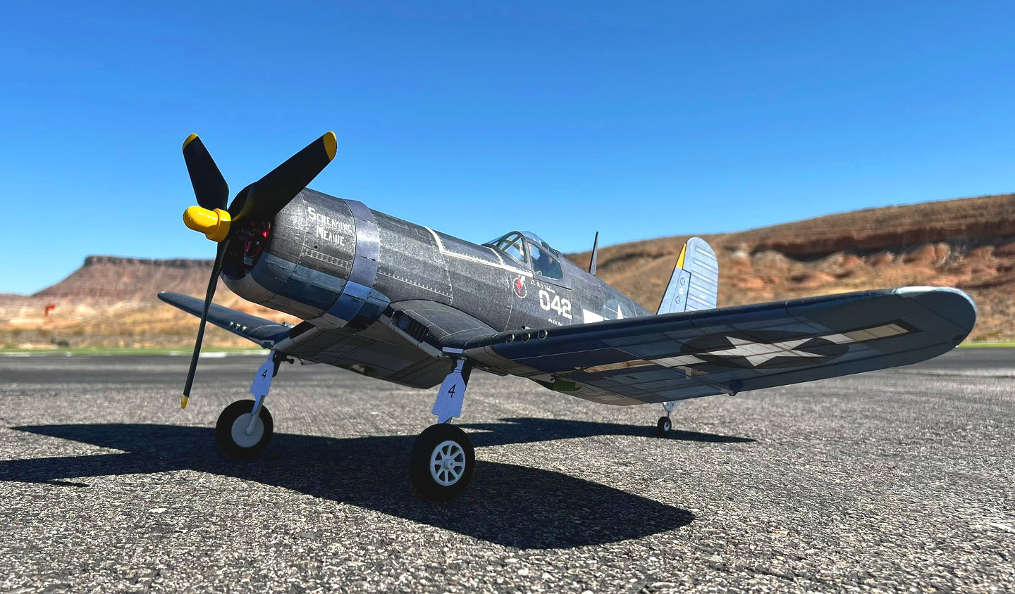 Derek Micko's Fun Scale Models 32" F4U Corsair "Screaming Meanie" is his latest addition to the squadron. This model is available as a laser-cut balsa kit at Manzano Laser Works (click here).