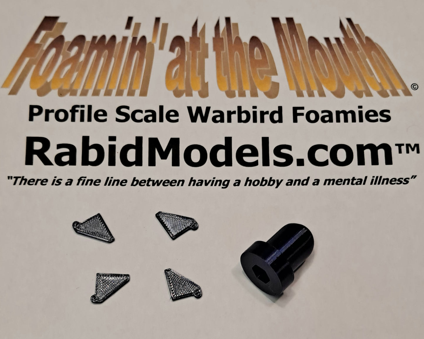 General Notes: 3D-printed parts are unpainted but require very little preparation - they can be painted with any plastic-compatible paint. Painting is recommended because all plastics will deteriorate over time if exposed to sunlight. The propeller hub is designed to ft onto an 8mm hex nut (3mm shaft). The strut covers and wheel hubs can be glued together with CA or Foam-Tac cement. The wheel hub halves are designed to be glued onto the wheel and have starter holes for the axle - drill out the holes to match the axle wire size you are using. The strut covers are designed to fit around 1/16" music-wire landing gear wire (as specified in the kit instructions).