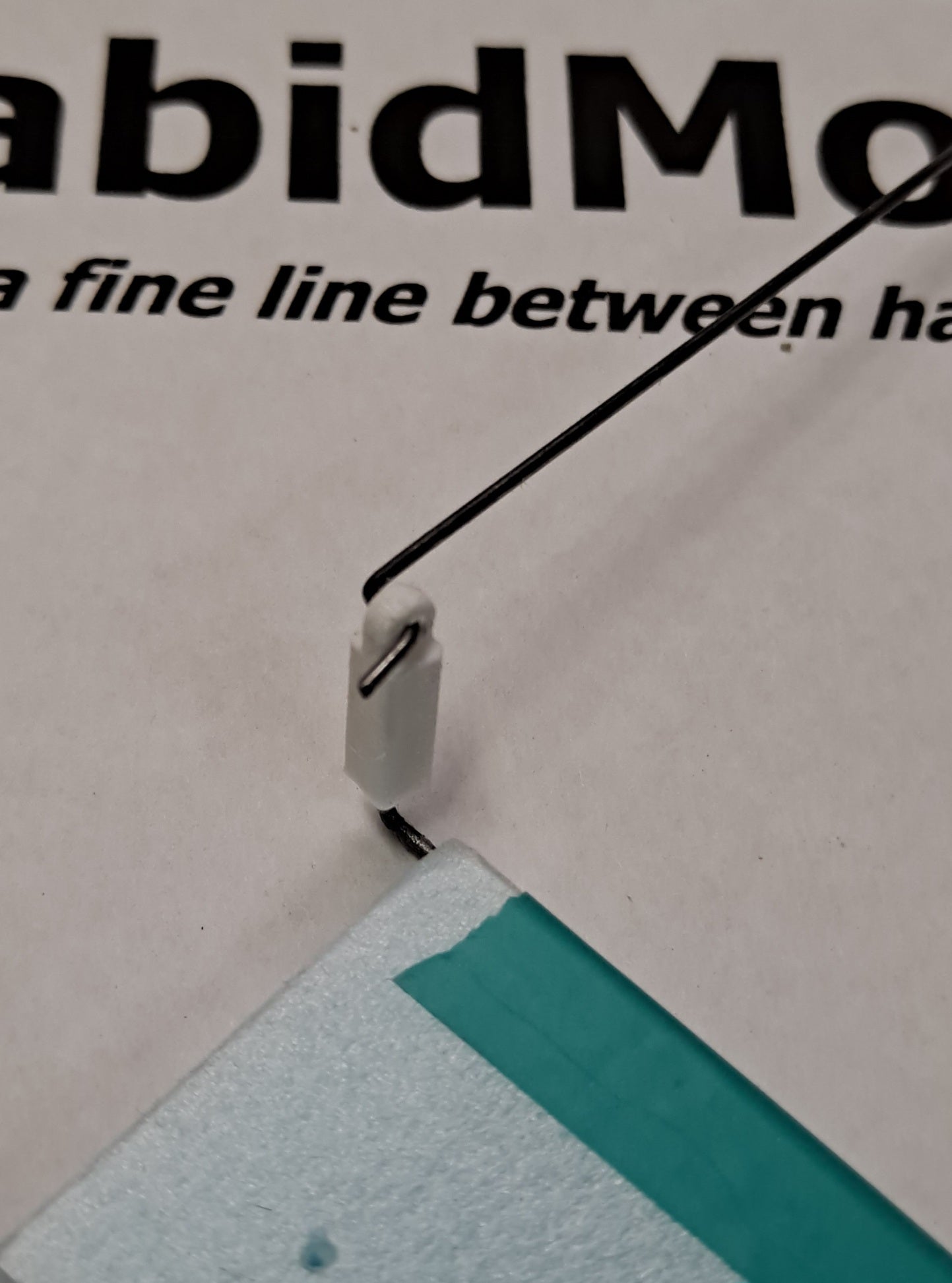 This custom-designed 3D-printed part is very handy for very small models where you're using a torque rod installation. Simply glue onto the end of the wire to provide an attachment point for a pushrod.