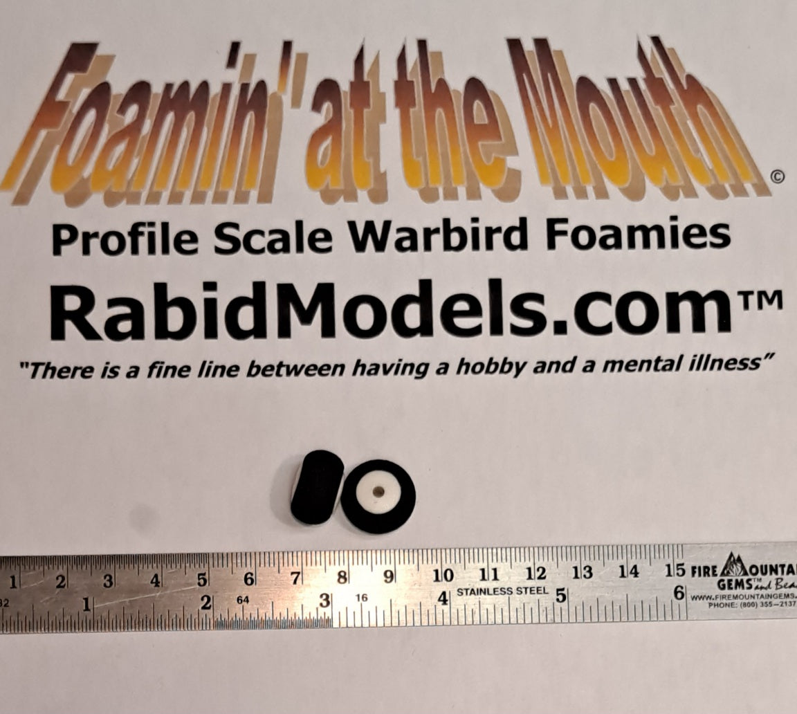 The smallest one is a foam "fat" tailwheel and hub, 16x10.4mm (about 5/8" by 1/2") - in a package of two. 0.5gm each. 2mm axle hole.